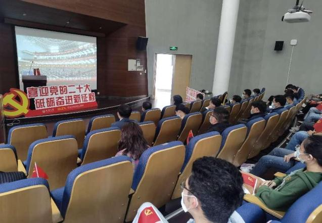 2022年10月16日上午10点,材料科学与工程学院党委组织学院全体师生收看中国共产党第二十次全国代表大会,学院领导班子成员、党支部书记、师生代表75人在嘉定校区德才馆报告厅及441会议室集中收看,其余党员同志300余人因疫情防控要求,在线上进行同步收看。