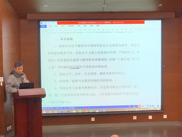 姚武副院长对《材料科学与工程学院年度考核工作办法》(2019征求意见稿)的进行了介绍,并答复了前期征求的意见和建议。