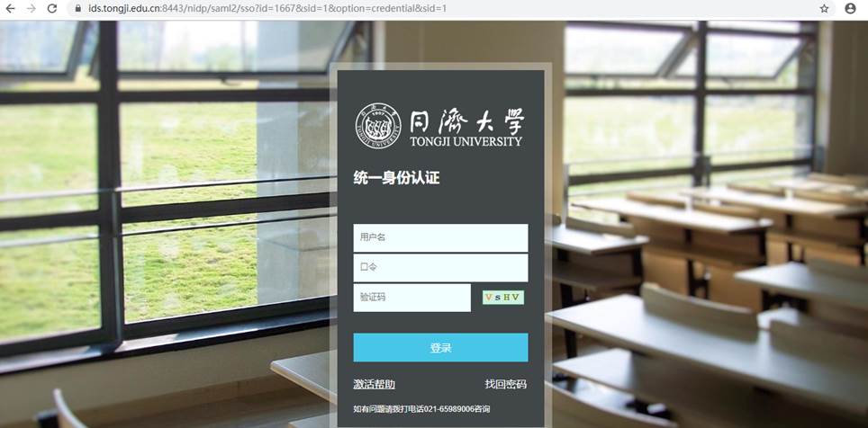 步骤 2 在地址栏中输入http://1.tongji.edu.cn或http://1.tongji.edu.cn/locallogin(生产环境)