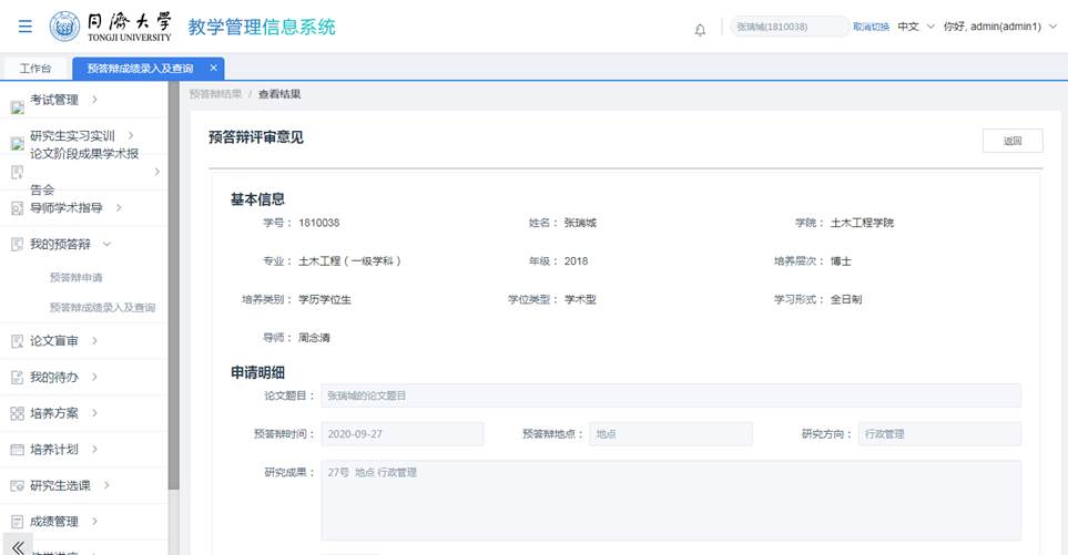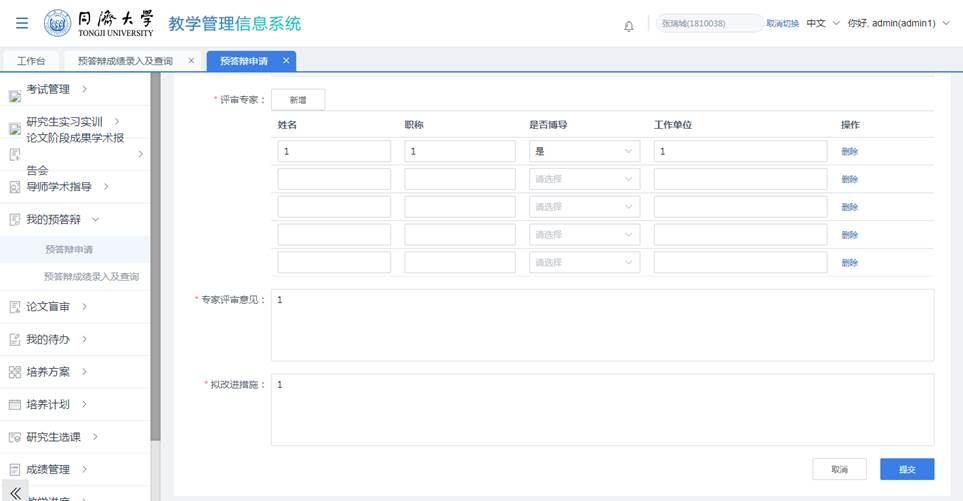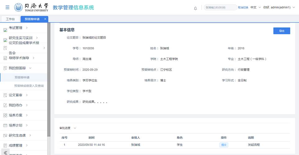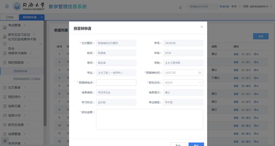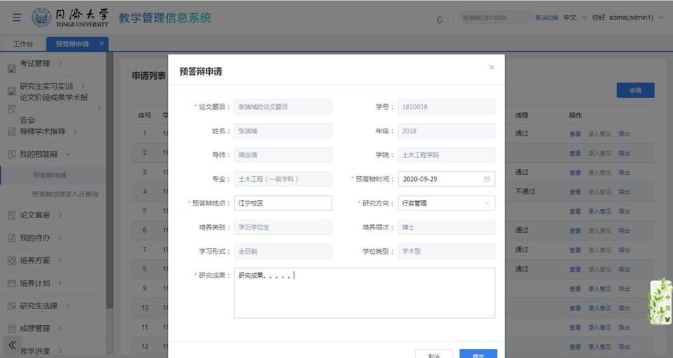 同济大学教学管理信息系统-必修环节-预答辩——学生操作指南 |