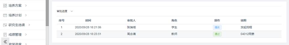 步骤 5 导师审核通过后,审批状态变为“已通过”,可以进行录入意见操作;