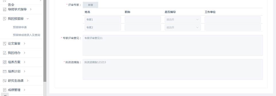 l 学生需要配置权限后才可看到“预答辩”菜单,如未看到菜单,请联系管理员为其授权后再重新登录查看。