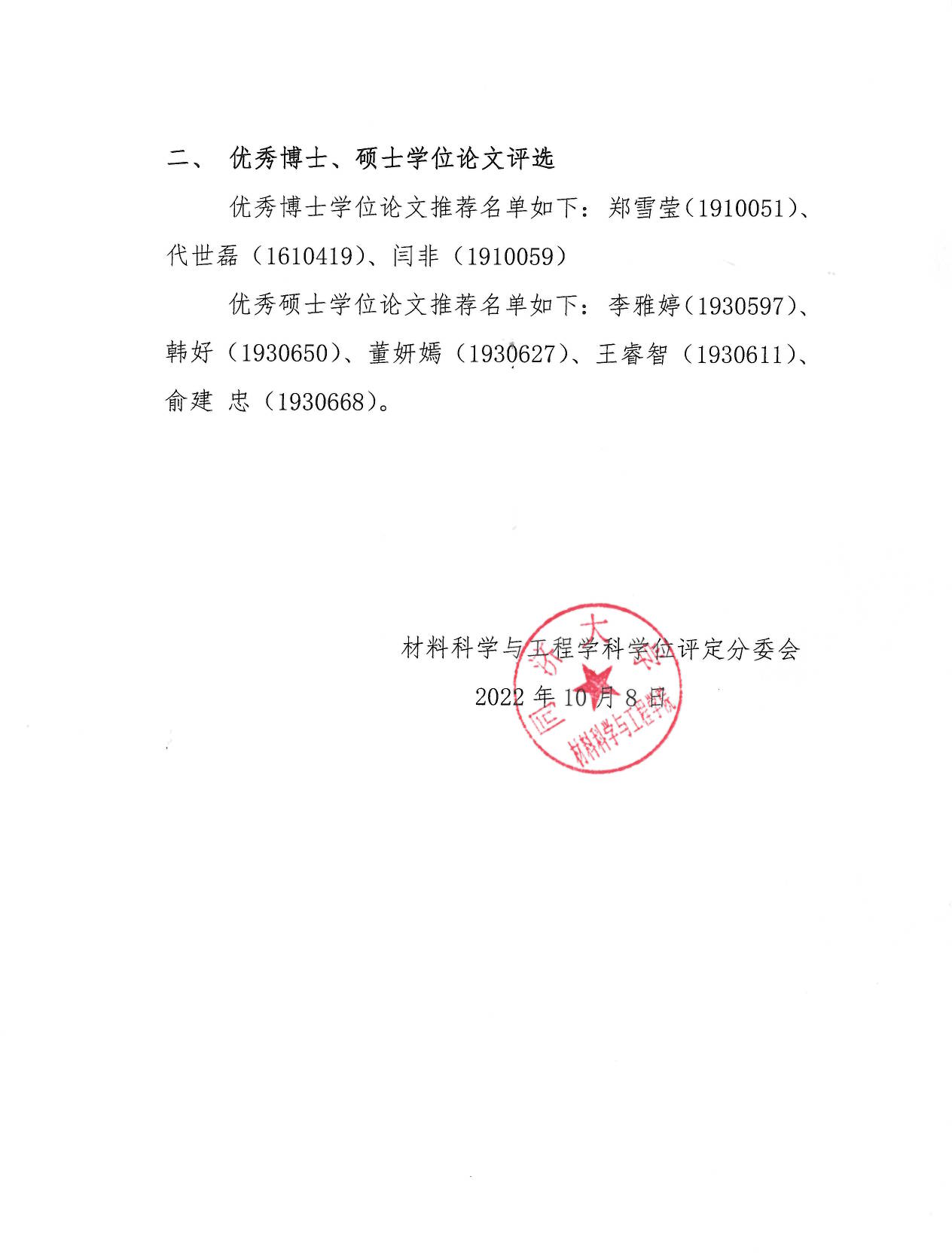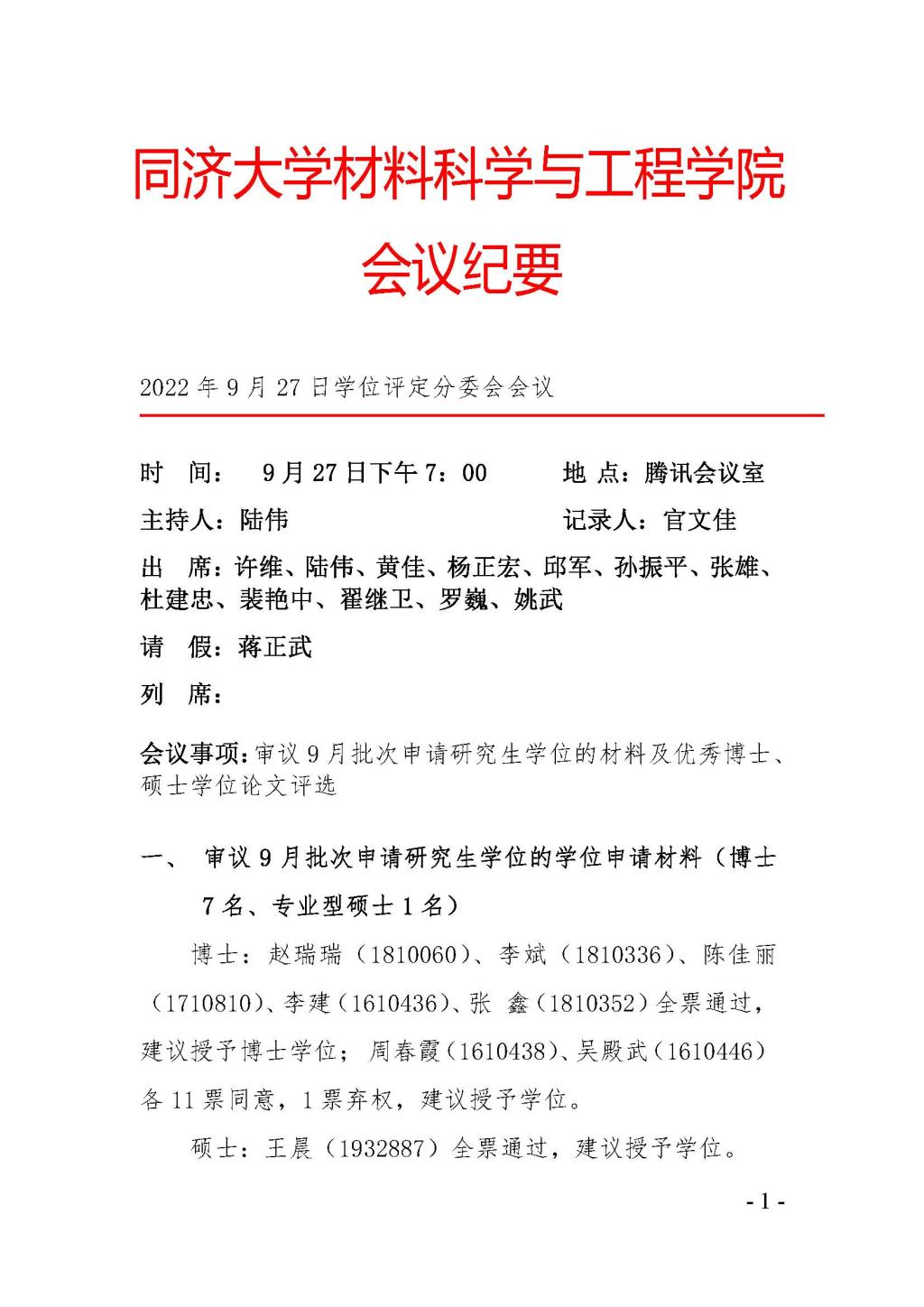 材料科学与工程学科学位评定分委员会会议纪要(20220927)