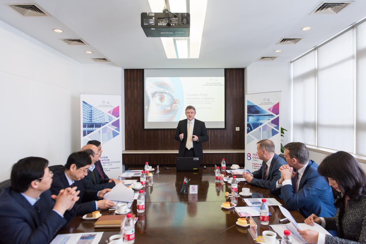 会前,同济大学常务副校长伍江教授与研究院指导委员会成员进行了亲切会谈。伍江校长向施乐文博士介绍了依托同济大学新成立的上海自主智能无人系统科学中心,希望同济大学与科思创能够强强联合、优势互补、携手共进,加快创新成果产业化步伐。
