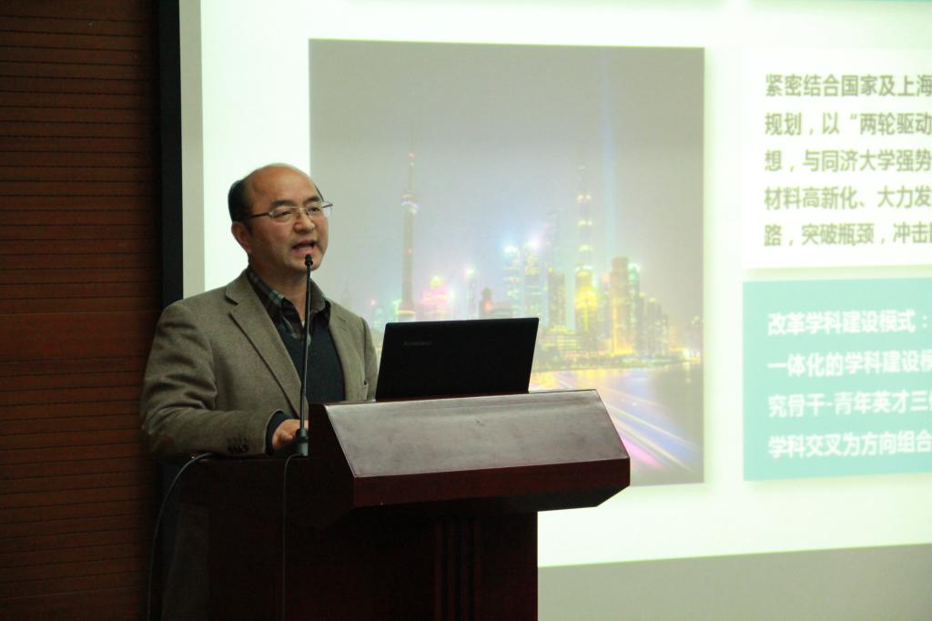 学院学科指导委员会主任黄云辉教授向大会介绍了新学期的工作重点计划及安排。强调2018年学院将围绕发展总体目标,坚持以“两轮驱动、人才引领”为指导思想,与同济大学强势学科交叉联合,走传统材料高新化、大力发展新材料的学科发展之路,通过深化学科建设,推进人才队伍建设,完善学院治理结构与运行管理制度,强化创新教育及人才培养优势,提升科研水平及科研服务能力,加强社会服务及国际交流与合作等途径,力争突破瓶颈,冲击国内一流学科。