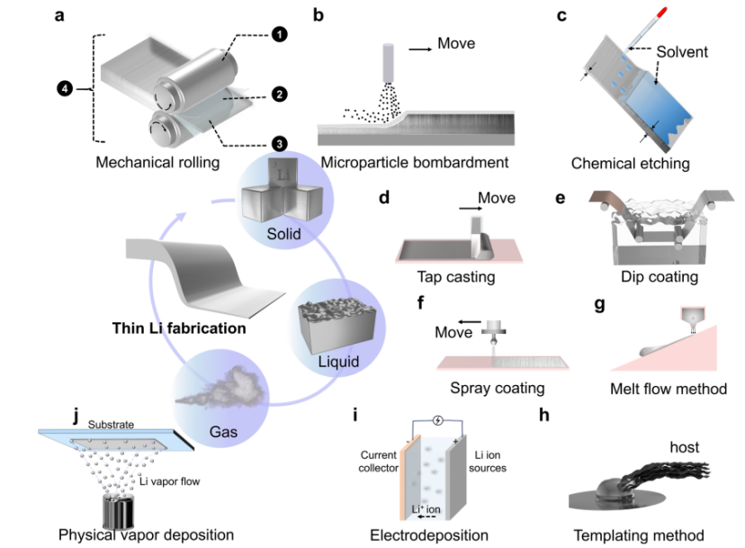 图1金属锂负极的前景、挑战、应对策略,以及减薄金属锂用于电池的直观逻辑