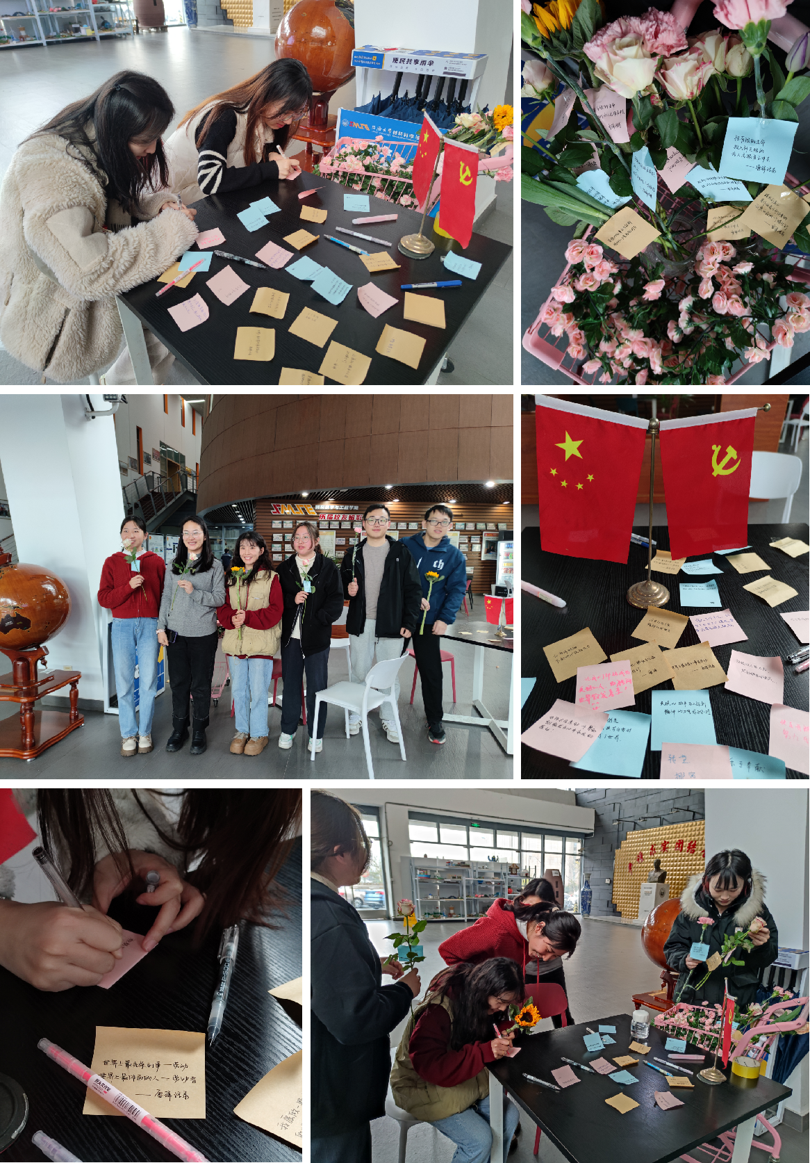 3月5日中午,研究生第六、第七党支部在德才馆一楼大厅联合开展“送你春天的第一束花——花束传递温情,雷锋精神永存”活动,鼓励学院师生在便利贴上分享或记录身边的好人好事、书写对雷锋精神的感悟、个人的美好梦想等等。每位分享者获得一束贴有雷锋经典语录便利贴的鲜花,大家收到鲜花的瞬间,眼眸中跃动了无限的惊喜。本次活动提升了同学们校园生活的幸福感,大家怀揣着对未来的满心期许,传递善意,昂扬奋进。