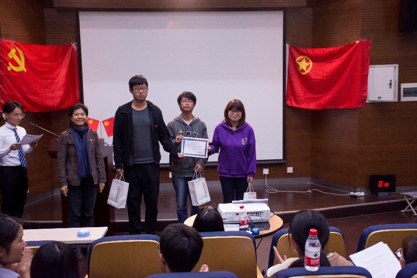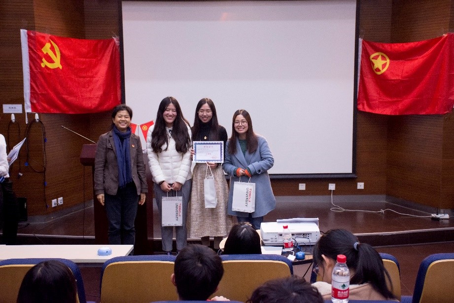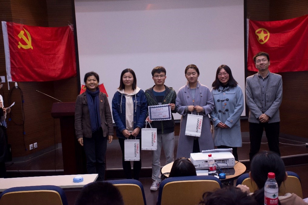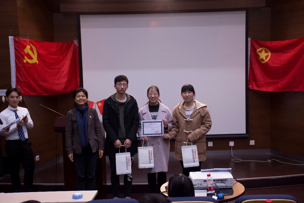 临近尾声,党委副书记王凌凌老师代表发言,她首先肯定了此次知识竞赛的重要意义和学生组织举办方的工作成果,并提出“竞赛已经落幕,学习却仍是进行时,赛后同学们可以通过建群资源分享或增加党支部团支部之间的联合交流学习,进一步学习党的最新理论知识”;另外,王老师以改革开放四十年来自己所感受到的切身体会,鼓励新一代学生党员不断夯实专业基础,将来为祖国的建设富强做出作为“同济人、材料人”应有的贡献。