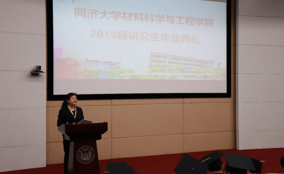 三月的校园樱花烂漫,2018年3月30日上午10点,材料科学与工程学院2018届研究生毕业典礼在嘉定校区济人楼312报告厅隆重举行。材料学院81级校友、陶氏化学(中国)投资有限公司亚太区首席科学家张量、学院党委书记王中平、化学科学与工程学院党委副书记(主持工作)杨晓杰、材料学院党委副书记王凌凌、学院副院长邱军、土木工程材料系主任孙振平、无机材料系主任严彪、高分子材料系主任杜建忠以及教师代表、家长代表和2018届122名毕业研究生出席。典礼由王凌凌主持。