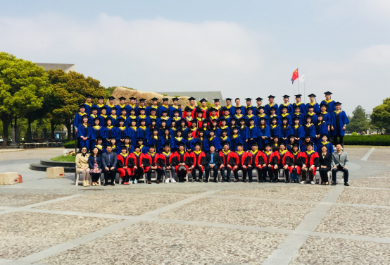 典礼前,济人楼1楼大厅,毕业生的依依别情;德才馆内,同学们身着湛蓝的硕士服或鲜艳的博士服盛装入场。同行同窗伙伴,或左右亲人父母,隆重而喜悦,大家纷纷在背景板前留念留下签名和对学院的美好祝福。