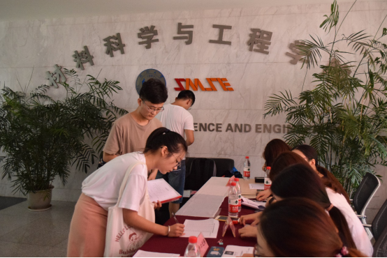 12点整,材料学院迎来了第一位新生,迎新工作小组立刻进入状态,每一位成员迅速行动,从扫描身份证、查验应届生毕业证书与学位证书、收取身份证复印件、党团组织关系介绍信的提交、户口党组织关系的转移至培养计划的讲解,再至各班班主任处报到、分发材料,最后领取院服、帽子等,一步步过程看似复杂,却样样进行得有条不紊,每一个环节均会有负责的老师陪同,每一个步骤均会有热情的志愿者辅助,迎新工作因为他们的存在而完美开展!