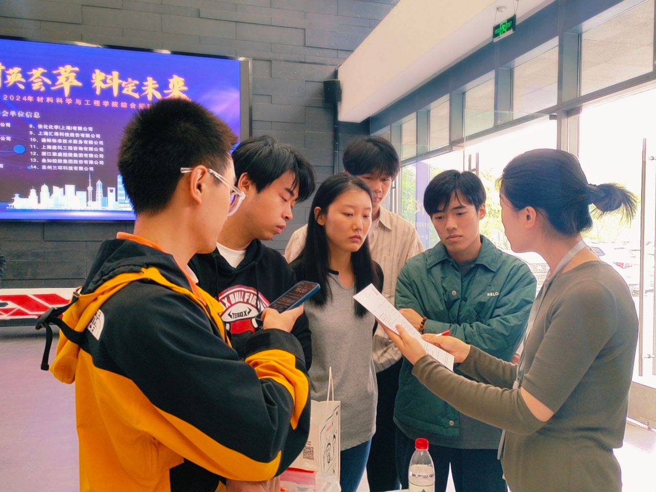 4月23日下午,“材”英荟萃,“料”定未来——材料科学与工程学院2024年就业实习招聘会在嘉定校区德才馆一楼大厅成功举办。本次招聘会吸引了上海市建筑科学研究院有限公司、上海化工研究院有限公司、上海华力集成电路制造有限公司、上海国轩新能源有限公司、科思创聚合物(中国)有限公司、浙江荣盛控股集团有限公司等16家业内知名用人单位参加,为莘莘学子提供了百余个优质就业与实习岗位,涵盖材料、化工、半导体、能源、通信、咨询等多个领域,现场气氛热烈。