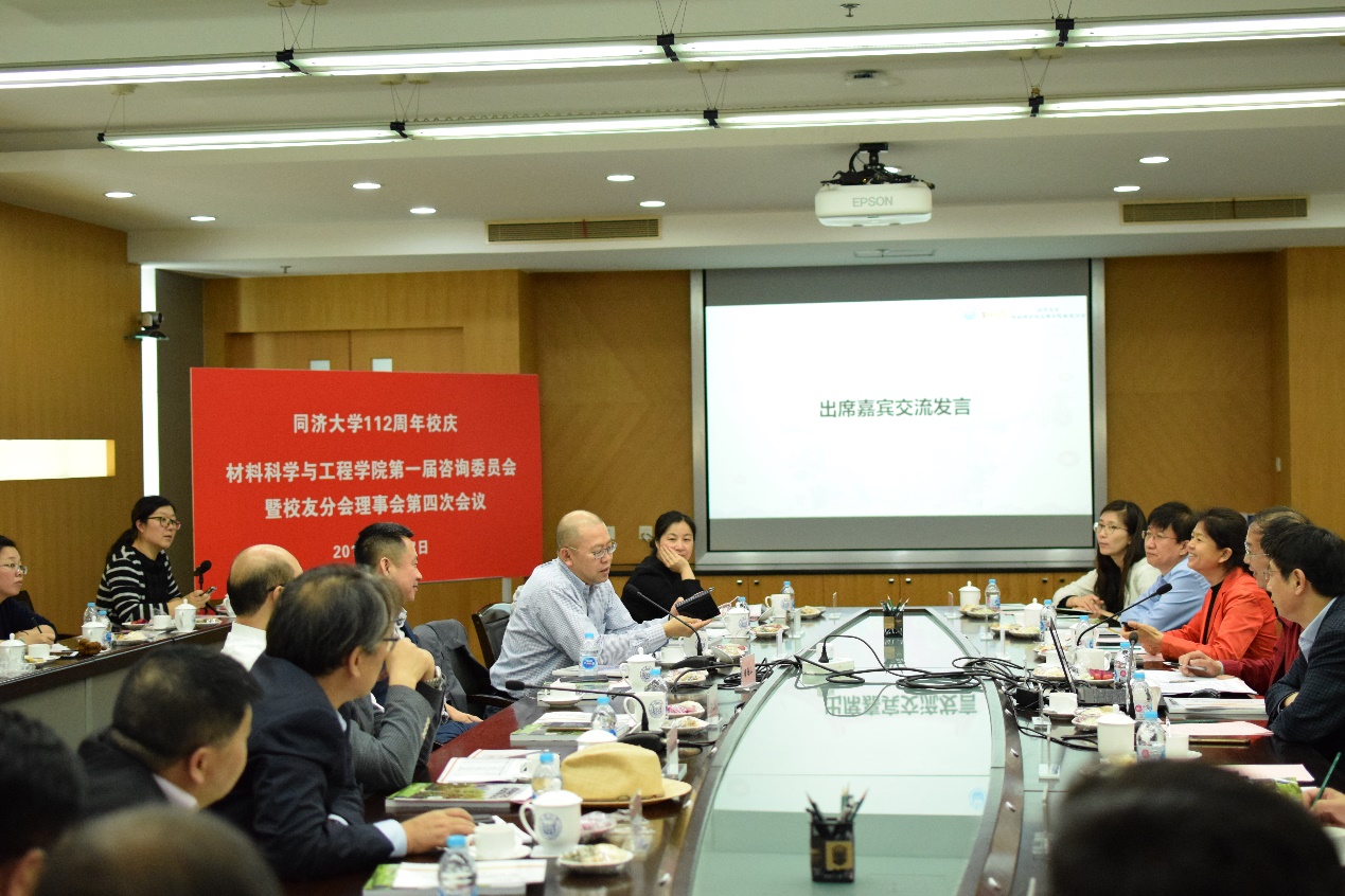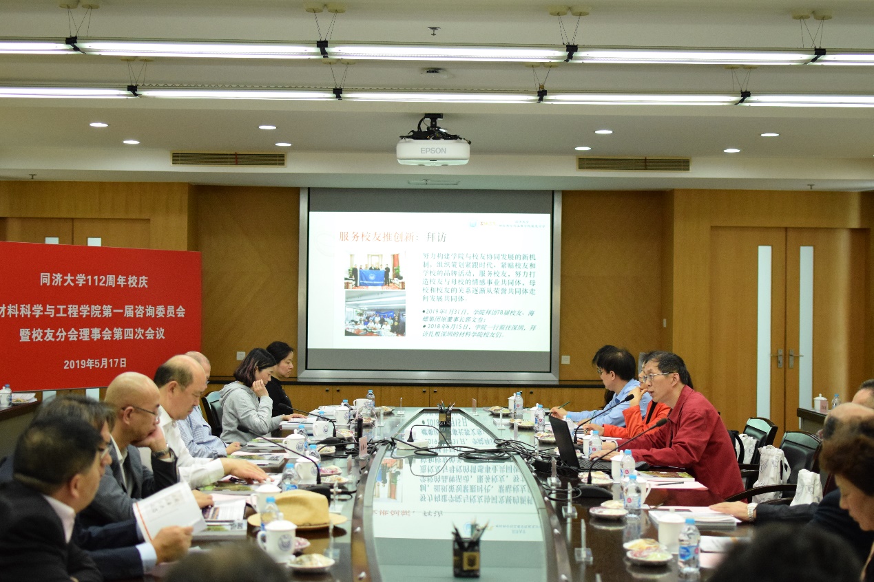 2019年5月17日下午,时值同济大学成立112周年之际,材料科学与工程学院第一届咨询委员会暨校友分会理事会第四次会议在嘉定校区济人楼210会议室隆重举行,出席本次大会的嘉宾有同济大学党委副书记吴广明、BB贝博艾弗森官方网站校友分会名誉会长郭文叁、同济大学校董胡金华、唐春山、李月中、黄国滨,校友分会副会长沈国强、咨询委员会邱建荣、干皆康,校友分会理事李清海、周剑平、林冶、王峥、蒋建明、王瑾、袁怡洁,海创嘉宾杨开发、袁宝星,以及同济大学对外发展与联络办公室主任、基金会秘书长廖宗廷,同济大学对外发展与联络办公室方凡老师,材料科学与工程学院党委书记王中平、学科委员主任黄云辉和材料科学与工程学院教师代表等,共计30余人。大会由材料科学与工程学院党委书记王中平主持。