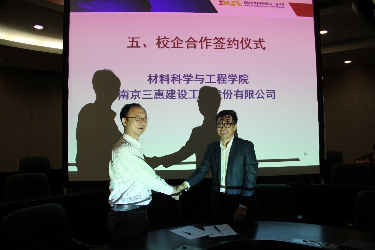 邱军副院长代表学院与南京三惠建设工程股份有限公司进行了校企合作签约仪式,三惠公司代表表示今天的签约只是合作的一个起点,希望今后会有更深层次的合作。