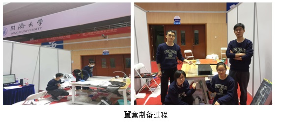 11月21日下午比赛正式拉开帷幕,第一个比赛主题利用碳纤维和环氧树脂制造一种翼盒结构。同济大学代表队一拿到赛题,立即探讨分工,两位队员开始设计结构尺寸,一位队员负责计算机模拟,剩下两位队员负责组装实验仪器工具以及上网搜索相关的制备工艺信息。经过一下午的努力,基本掌握真空注入制备流程。11月22日上午即开始分工,3位队员参加头脑风暴环节智力问答,剩余队员继续进行产品制造。智力问答环节涉及到飞行器制造、药物成分、轮船制造以及日常家用电器制造等等复合材料各个方面的知识。经过3天的辛苦努力,同济代表队按照制作完成翼盒结构,并进行了三点弯曲试验测试,测试结果较好,超过了大部分参赛队伍。