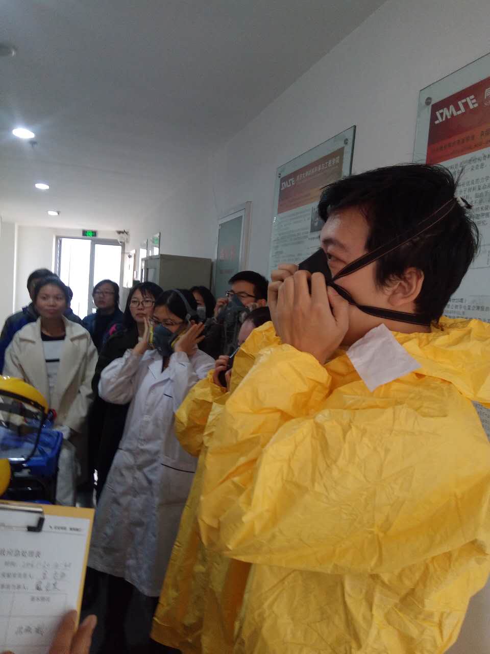 材料学院师生认真学习并由部分同学现场操作完成了整个应急处置过程,现场气氛热烈而严肃。