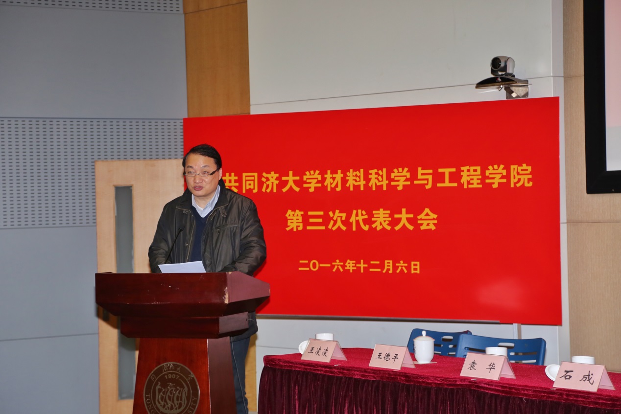 2016年12月6日下午,中共BB贝博艾弗森官方网站第三次代表大会胜利召开!学校党委副书记徐建平、学校组织部副部长石成出席大会,材料学院民主党派、无党派人士等代表出席会议,82名党员代表与会。会议由材料学院党委副书记王凌凌主持。