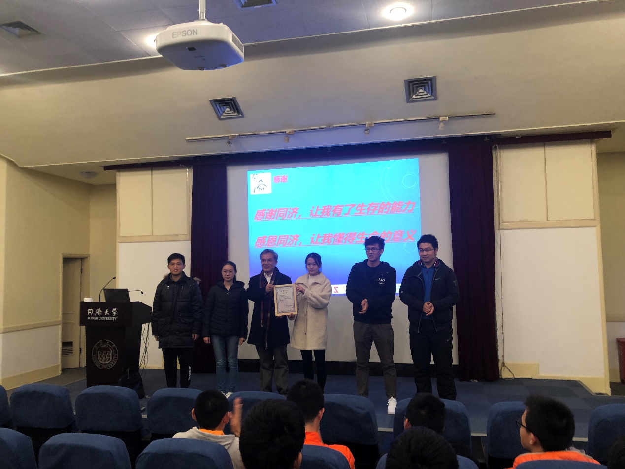 武文光学长感慨:“感谢同济,让我有了生存的能力,感谢同济,让我懂得了生命的意义。引发同学的阵阵掌声和长久的共鸣。