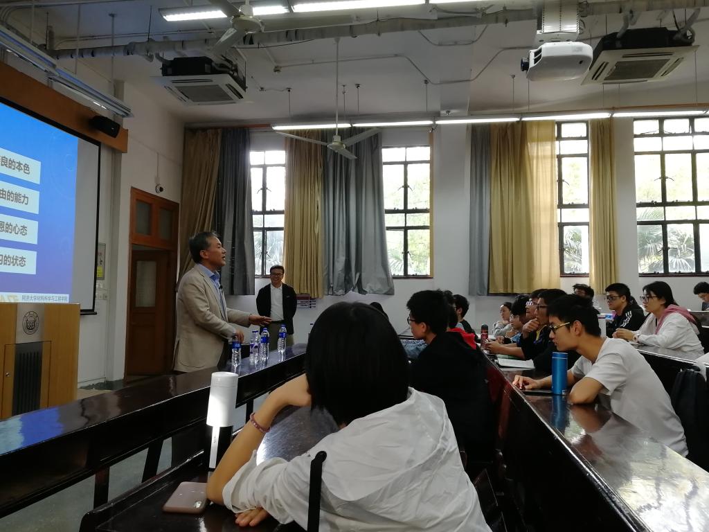 “我很庆幸我被调剂到材料专业,”老学长在说出自己刚入大学的经历时说道,“可能当时是迷茫的,但迷茫的时候我们更应该去做好自己应该做好的事情。”谈到进入社会工作时,武学长打个比方:“大家各自坐在一条顺流而下的船上,你不划,可能船速是2,你划了可能是6,这样的选择在你自己,努力要自己去做。”是啊,不经过努力有怎么可能有收获?正是秉持着这样的理念用心经营,武学长的公司产量在中国排在首席,并且总和达到了第二到第八的总和。谈到材料现状,武学长不禁感叹:他当年读书,连拥有文具盒都是先进的标志;而现在看看路上川流不息的车辆,生活条件越来越好,未来也会更加美好。时代的摆钟正在慢慢变快,市场上对于创新材料的要求越来越高,不同材料迭代周期越来越短,这既是一个机遇,同时也是挑战,需要广大青年人去创造去努力。