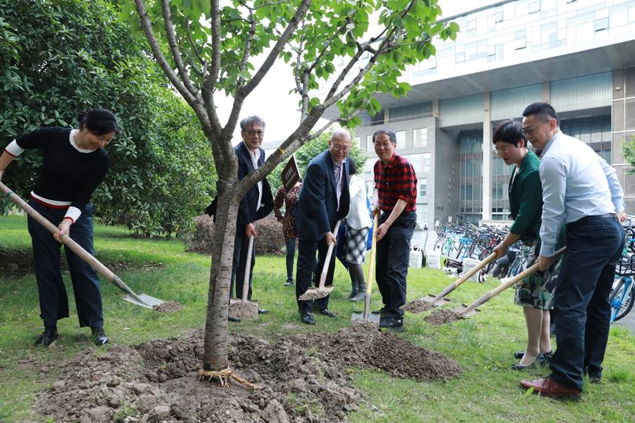 最后,全体与会人员一起合影留念。与会校友和学院领导一起移步至德才馆植树留念,共祝学院65华诞,祝福学院越来越好。十年树木,百年树人,校友工作任重道远。同济材料校友分会第二届理事会将继续凝心聚力、开拓进取,为打造一流材料学科、服务全体材料校友而继续努力奋斗!