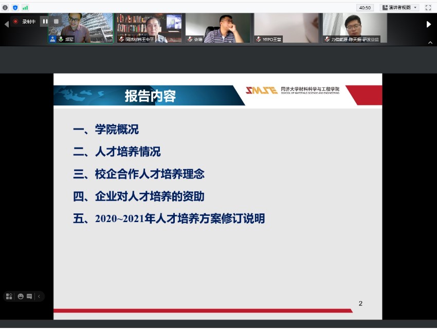 2021年5月20日,由我院主办的第三届材料科学与工程学院校企合作研讨会采取线上方式顺利举行。举办本次活动的宗旨是为了进一步凝炼专业特色和人才培养目标,持续推进和深化学科交叉复合型人才培养模式,加大复合型人才培养力度,强化实践教学,拓展产学研合作,加强校企合作,提升学生实践创新能力,为国家和社会培养出更优秀的人才。上海城建集团、上汽集团、上海建工集团、华虹宏力公司、旗滨玻璃集团、科思创(上海)公司、安徽海螺水泥集团、延锋彼欧汽车外饰系统公司、上海华特企业集团、南亚新材料科技公司、力信能源科技公司等22家合作企业近30名代表及本科生院、院领导及部分教师代表出席了本次研讨会。会议由邱军副院长主持。