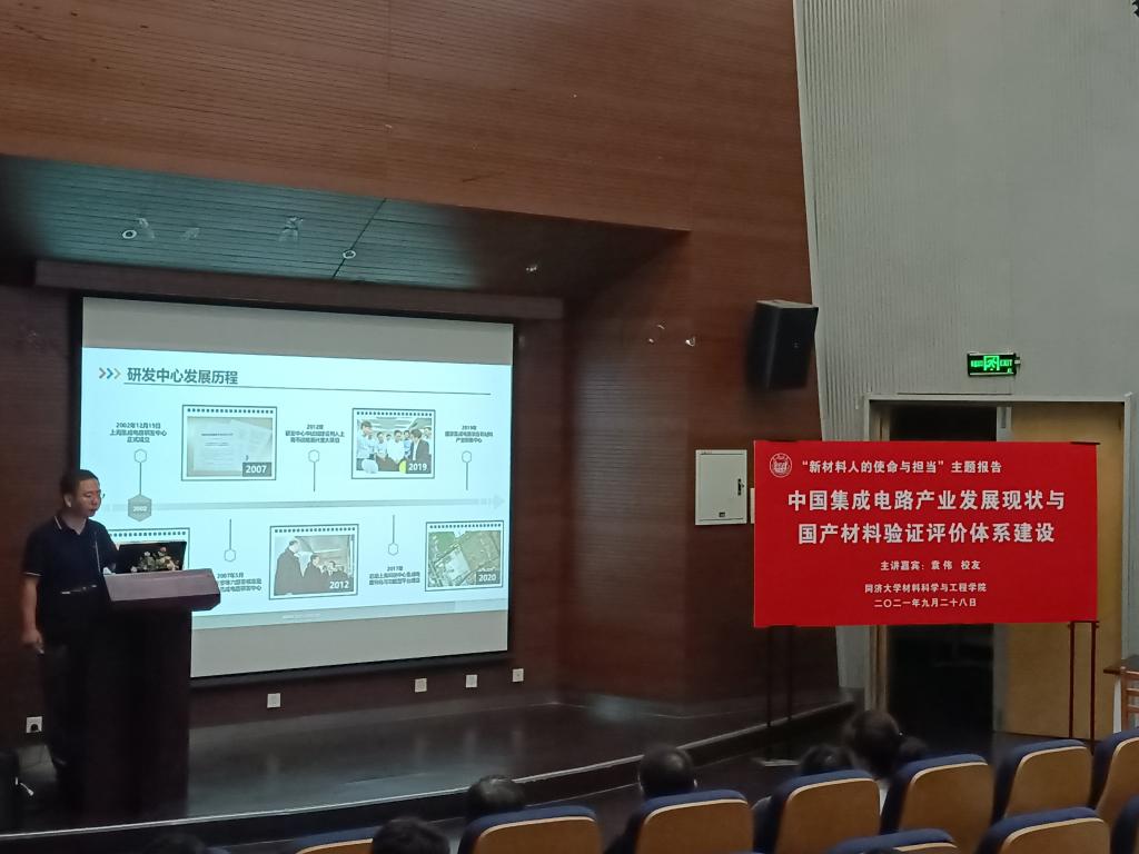 上海集成电路研发中心有限公司技术研发部副部长袁伟校友作“中国集成电路产业发展现状与国产装备材料验证评价体系建设”的报告,从IC产业现状、研发中心一期、二期研发进展加以分享。袁伟校友深刻指出,如今国产化集成电路是我国战略性新兴产业的基石,而集成电路技术是经济社会发展的关键驱动力,人工智能、机器学习和物联网助力集成电路的发展。目前,我国集成电路产业市场巨大,然而供应不足。因此打造我国技术最先进、辐射能力最强的世界级集成电路共性平台,为自主芯片制造提供技术支持,为国产设备的材料提供验证环境,是必然选择。研发中心的主要功能包括:集成电路重大共性技术研发平台、第三方国产装备和材料评价验证中心和集成电路新产品技术服务平台。