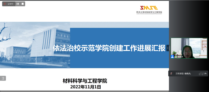 杨晓杰书记对学院依法治校示范学院创建工作进展从创建背景、工作进展和特色成效初步设想三方面向与会人员进行汇报。她强调,该项工作有助于实现依法治院、集体决策的工作目标,有助于学院各项工作的规范化、公开化,有助于学院治理体系优化和治理效能提升。
