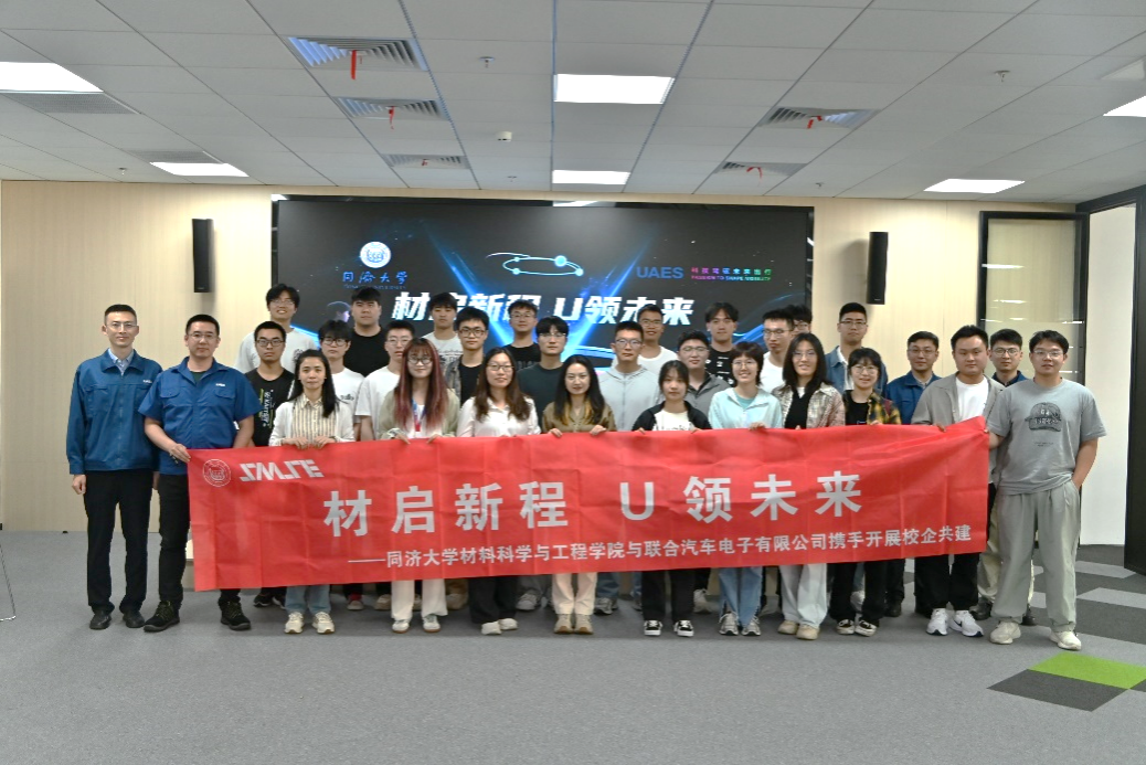 2025年5月26日,材料科学与工程学院师生一行赴联合汽车电子有限公司(以下简称 UAES )太仓分公司开展“材启新程,U领未来”校企共建活动。此次共建活动聚焦新能源汽车电子领域,通过企业参访、技术交流和生涯指导,为材料学子搭建产学融合的实践平台。本次活动由学院研究生第八党支部主办,学院辅导员周龙老师带队,近30名师生共同参与。
