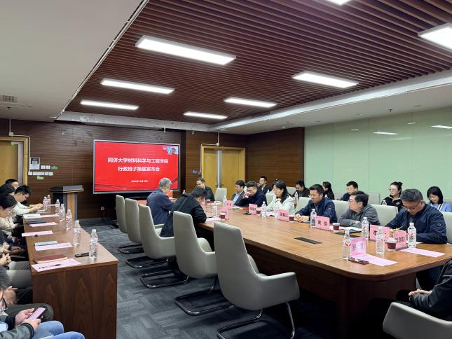 11月10日下午,材料科学与工程学院行政班子换届宣布会在嘉定校区德才馆441会议室举行。校党委常委、常务副校长吕培明,校党委常委、组织部部长王峻出席会议,学院党政班子、党委委员、院长协理、部门负责人及青年教师代表参加会议。