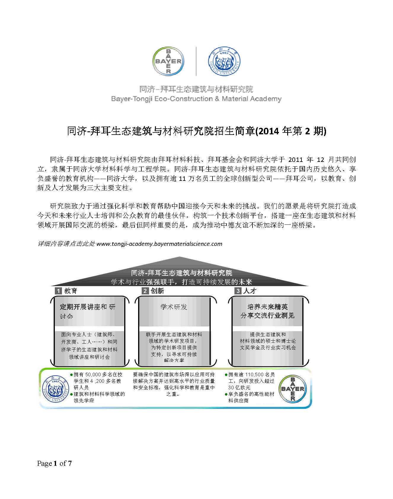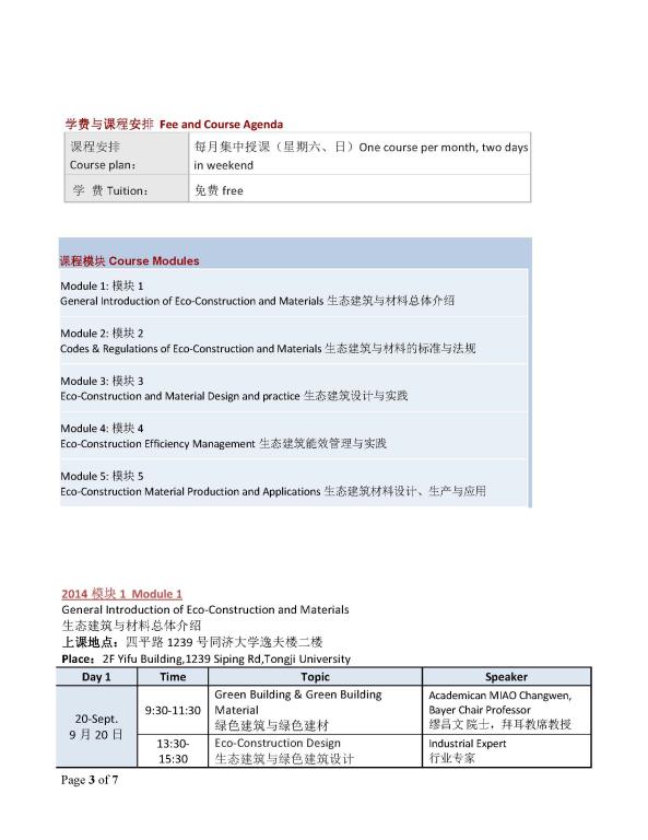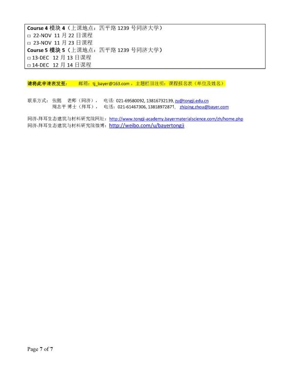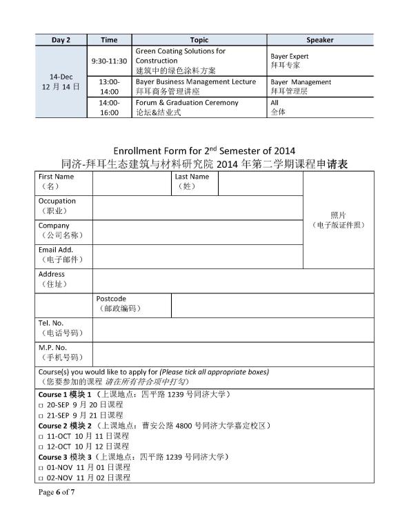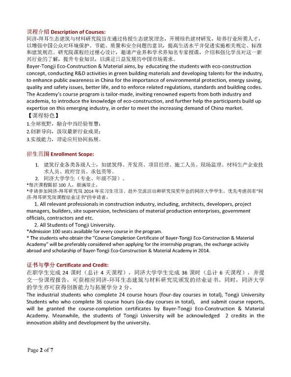 附件1 :同济-拜耳研究院课程招生简章(2014年第二学期)