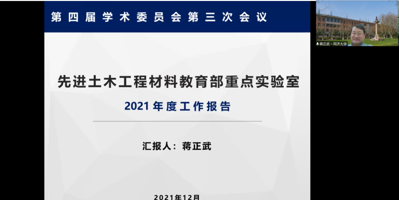 2021年12月1日,先进土木工程材料教育部重点实验室第四届学术委员会第三次会议以线上线下融合方式顺利召开。会议由学术委员会主任缪昌文院士主持,学委会副主任李宗津教授、姚燕教授,学委会委员程新教授、余其俊教授、王发洲教授、邢峰教授、史才军教授、谢永江教授、钱觉时教授、林嘉平教授、吴广明教授、黄云辉教授、张雄教授参加会议。同济大学副校长童小华教授、材料学院党委书记杨晓杰教授、材料学院院长许维教授等领导出...