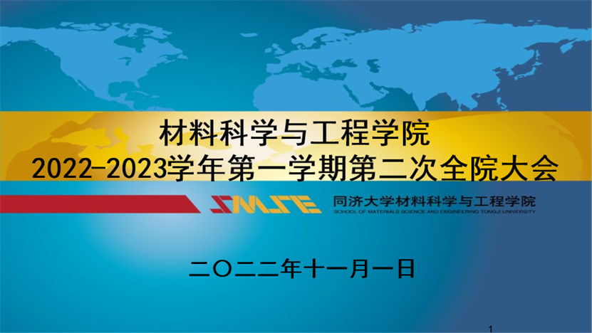 11月1日下午,材料科学与工程学院线上召开2022-2023学年第一学期第二次全院大会,会议由学院党委书记杨晓杰主持,学院党政领导班子和全院教职员工120余人参加了会议。为深入学习贯彻党的二十大精神,增强“四个意识”、坚定“四个自信”、做到“两个维护”,杨晓杰书记以《学习贯彻落实党的二十大精神 踔厉奋发推进学院高质量发展新征程》为题,向与会人员传达了中国共产党第二十次全国代表大会精神,对全院深入学习贯...