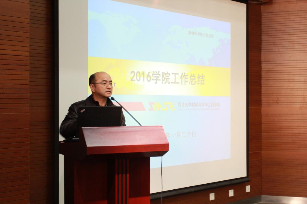 1月20日下午,材料科学与工程学院2016年年度总结大会在德才馆二楼报告厅隆重召开,学院学科委员会主任黄云辉、党委书记王中平等党政领导班子成员与会,全院一百一十余名教职工参加了会议,大会由翟继卫副院长主持。
